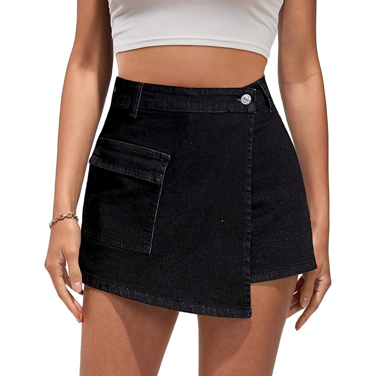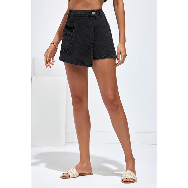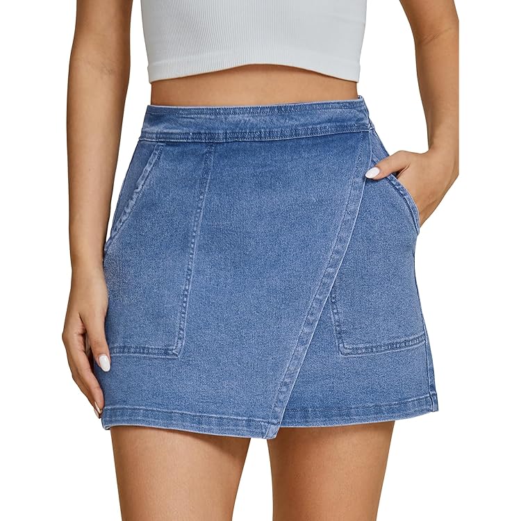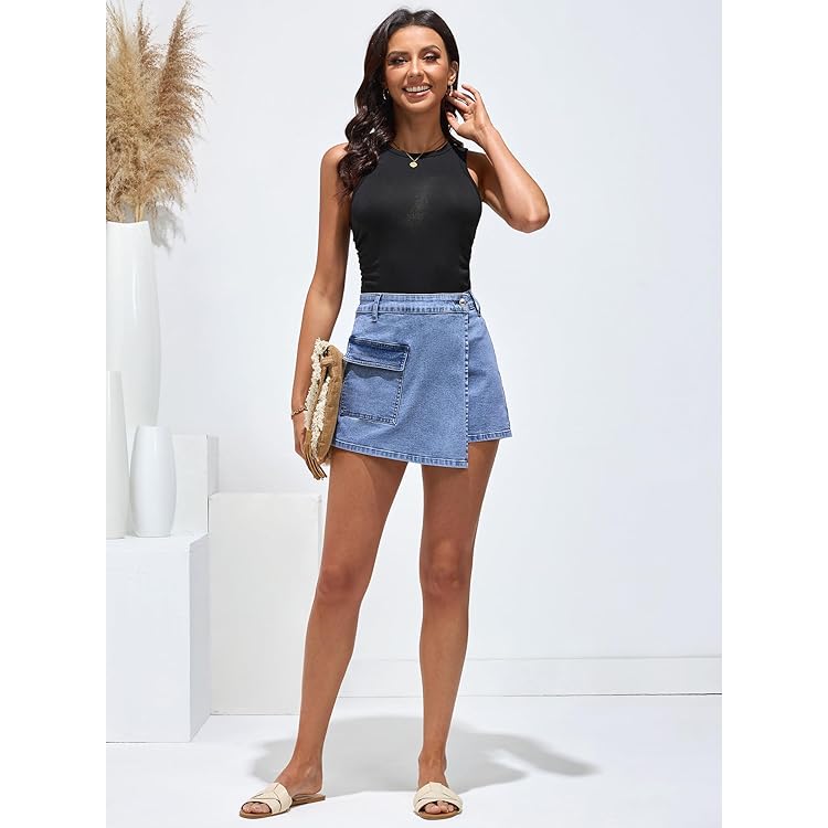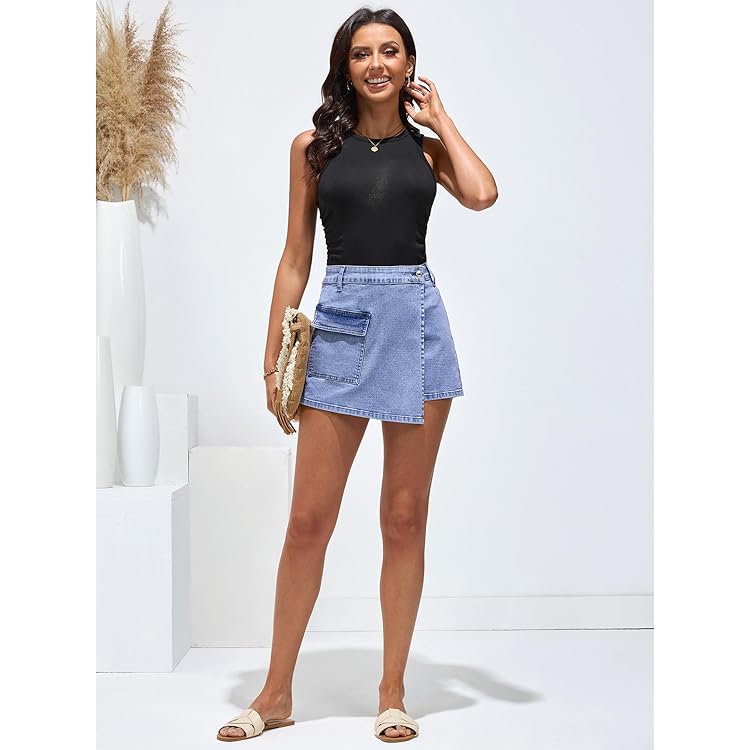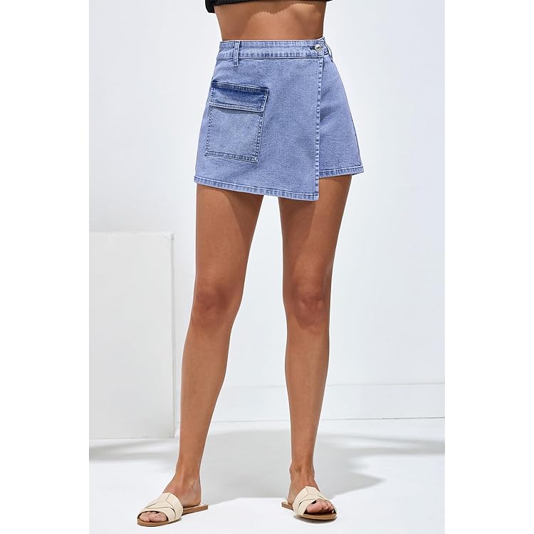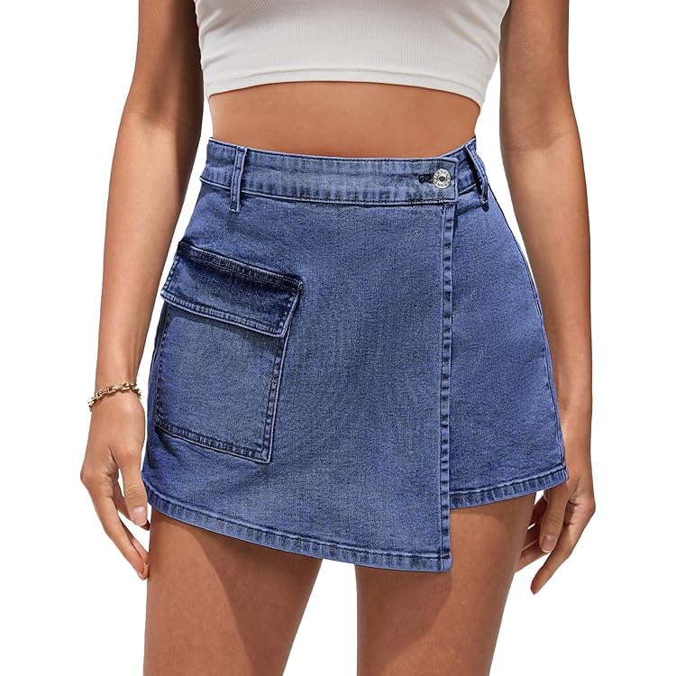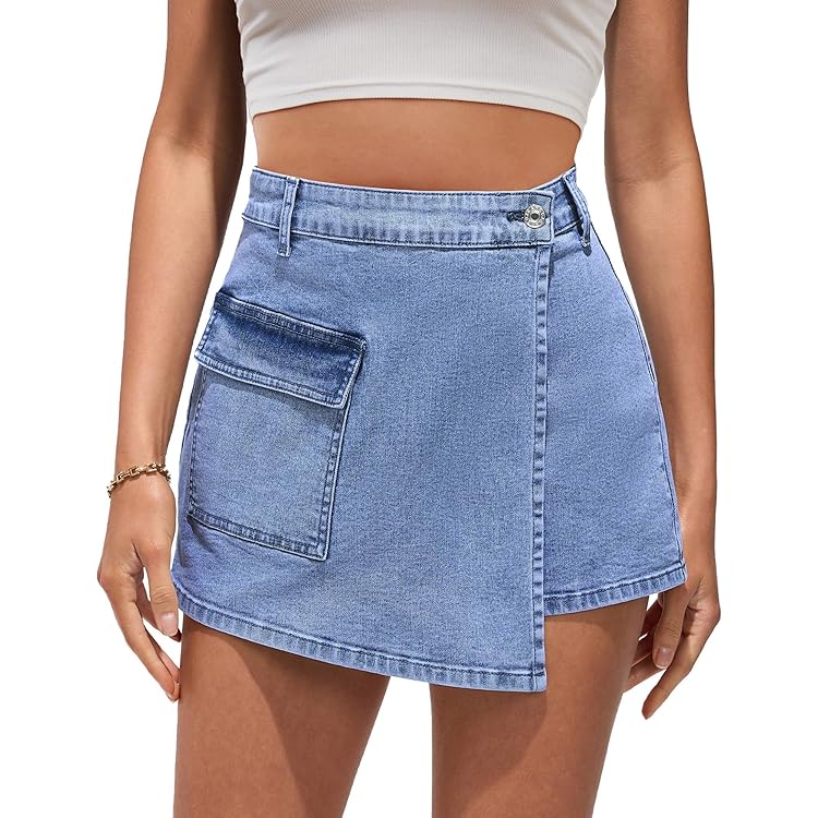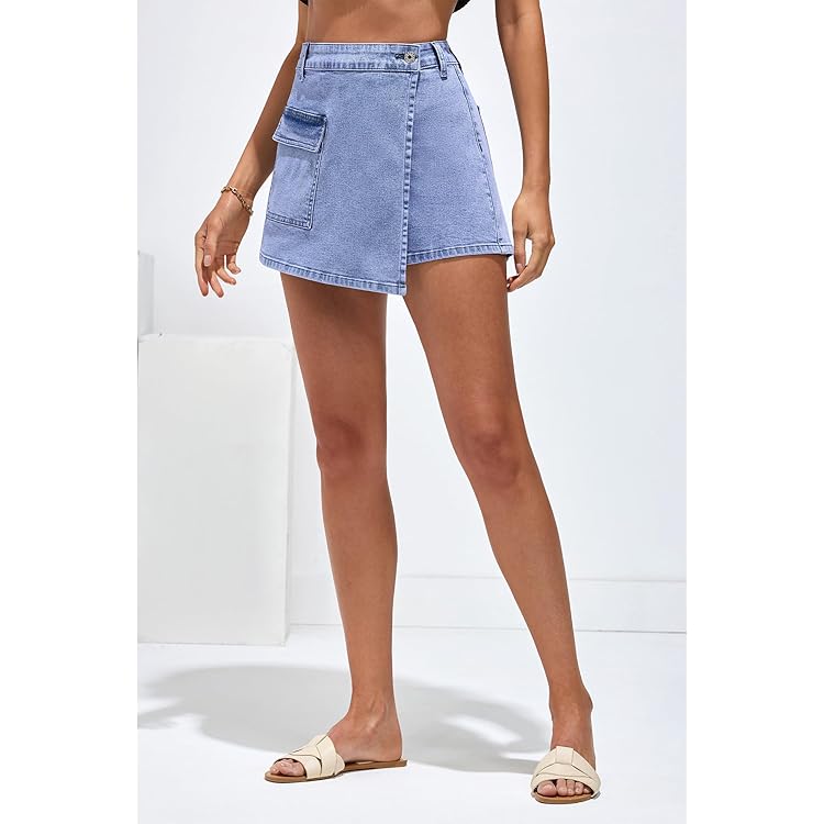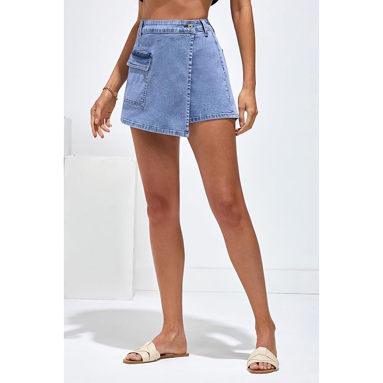 Denim Skorts for Woman Cargo Faux Wrap Jean Skort Skirts Stretchy High Waisted Skirt Shorts Country Concert Wear