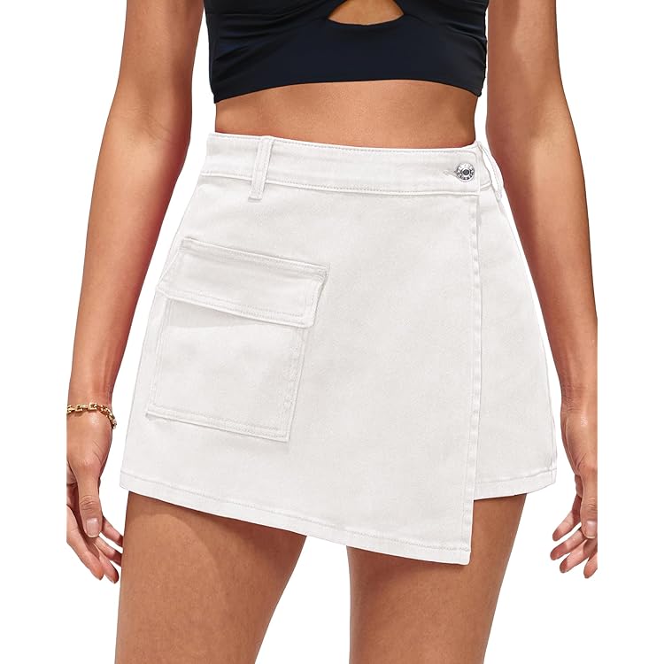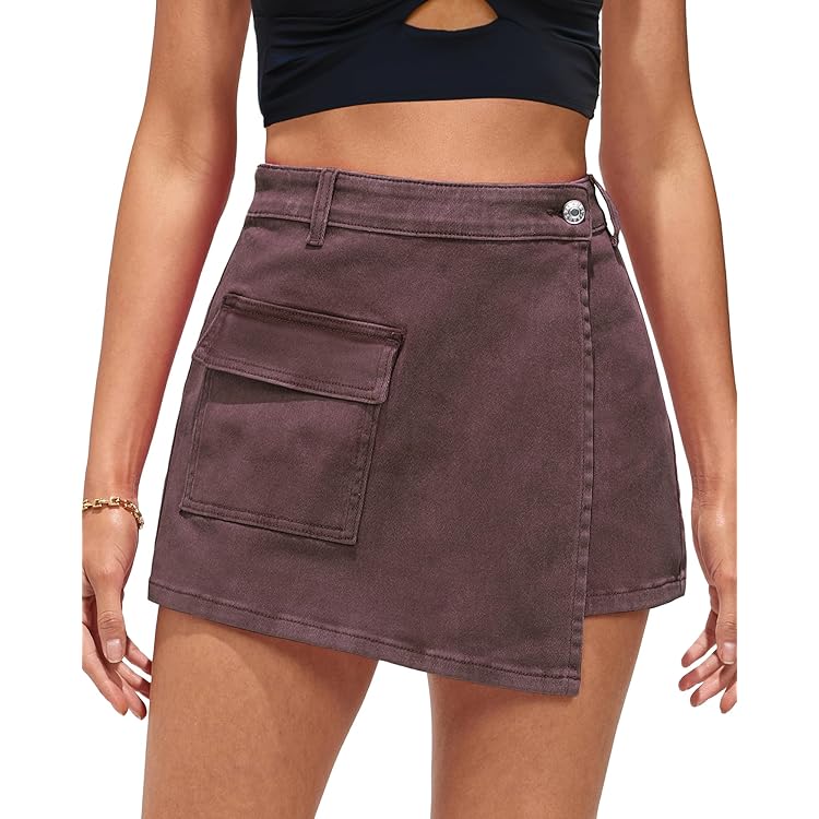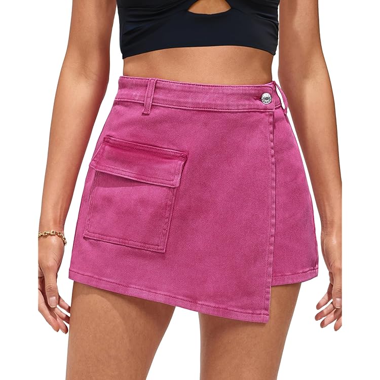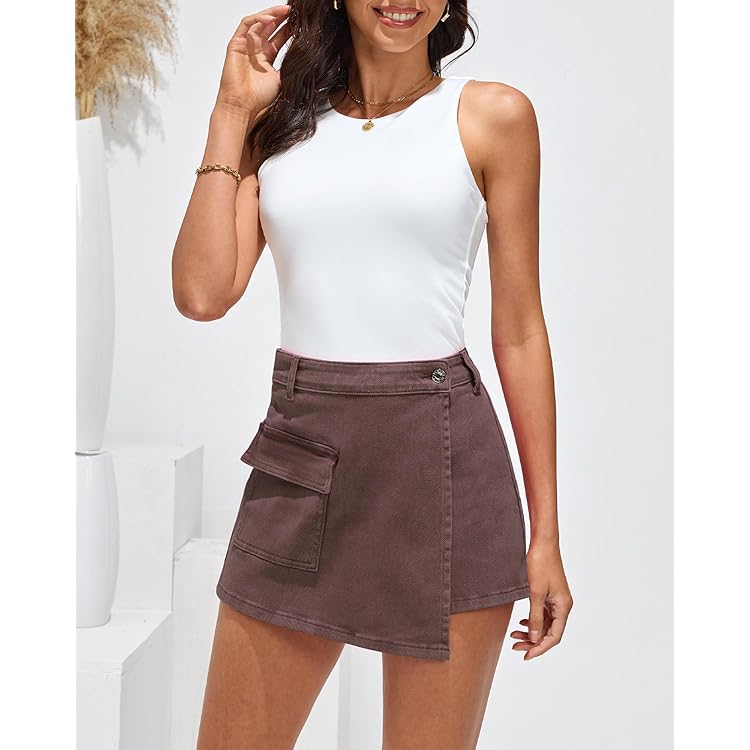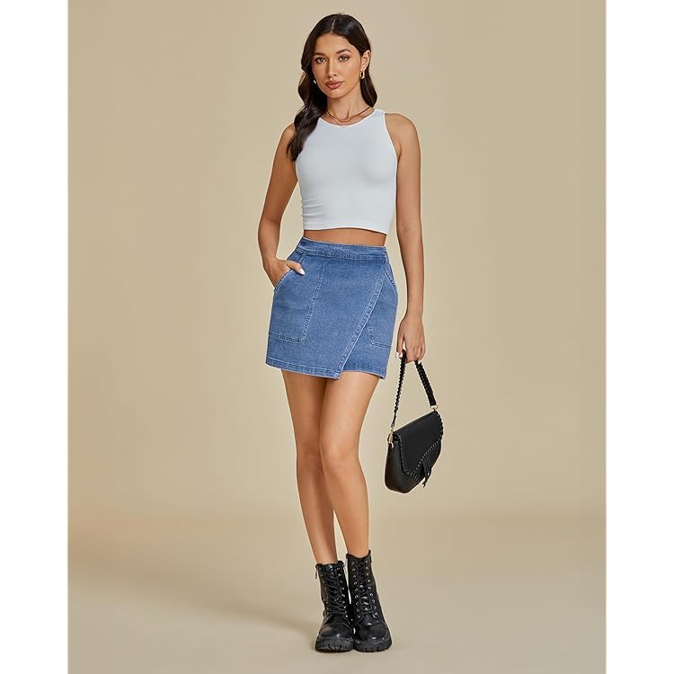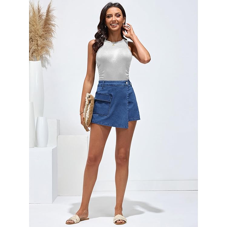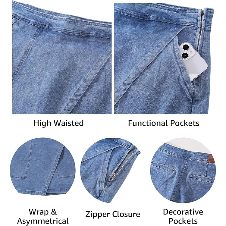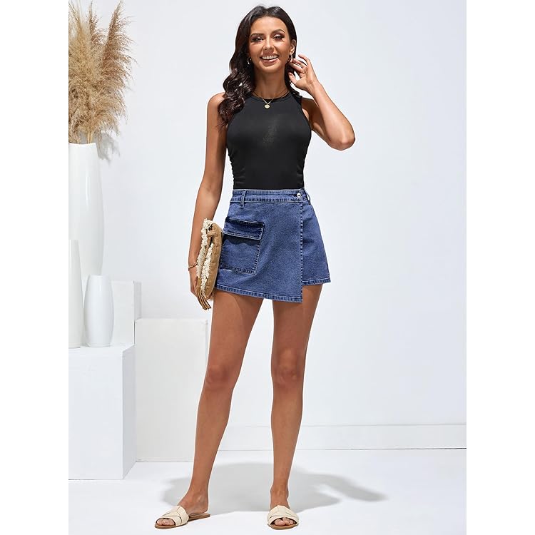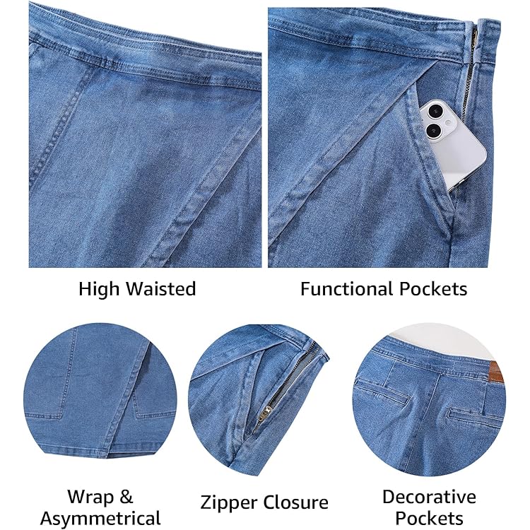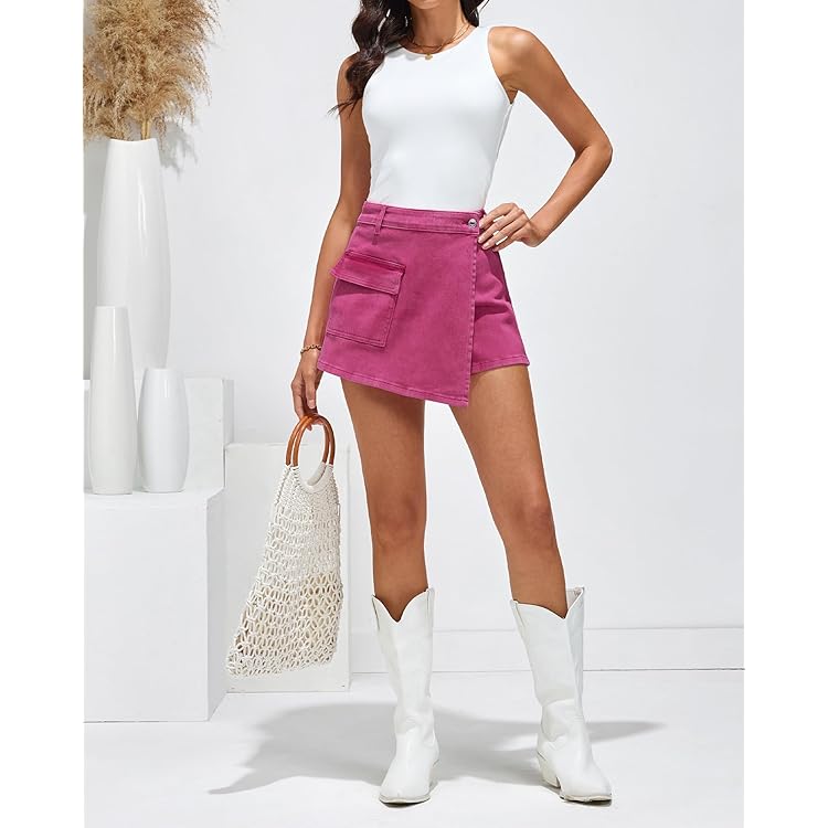 Denim Skorts for Woman Cargo Faux Wrap Jean Skort Skirts Stretchy High Waisted Skirt Shorts Country Concert Wear
