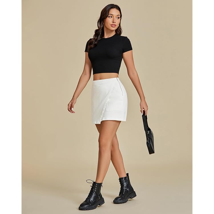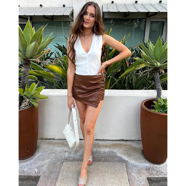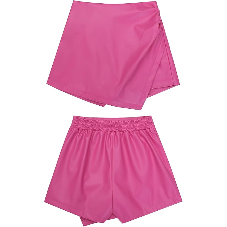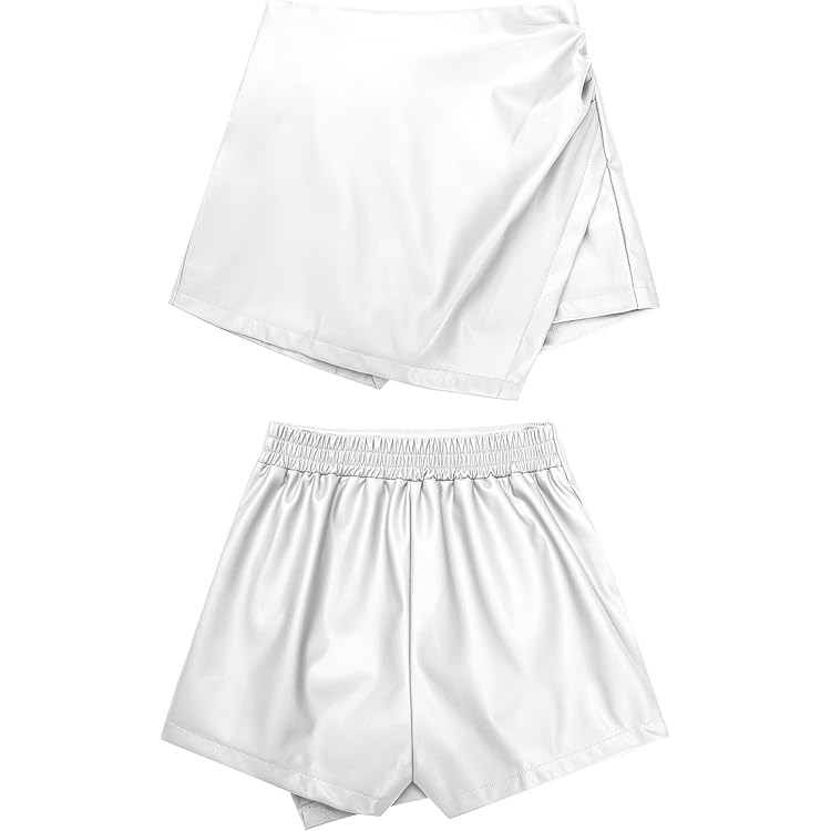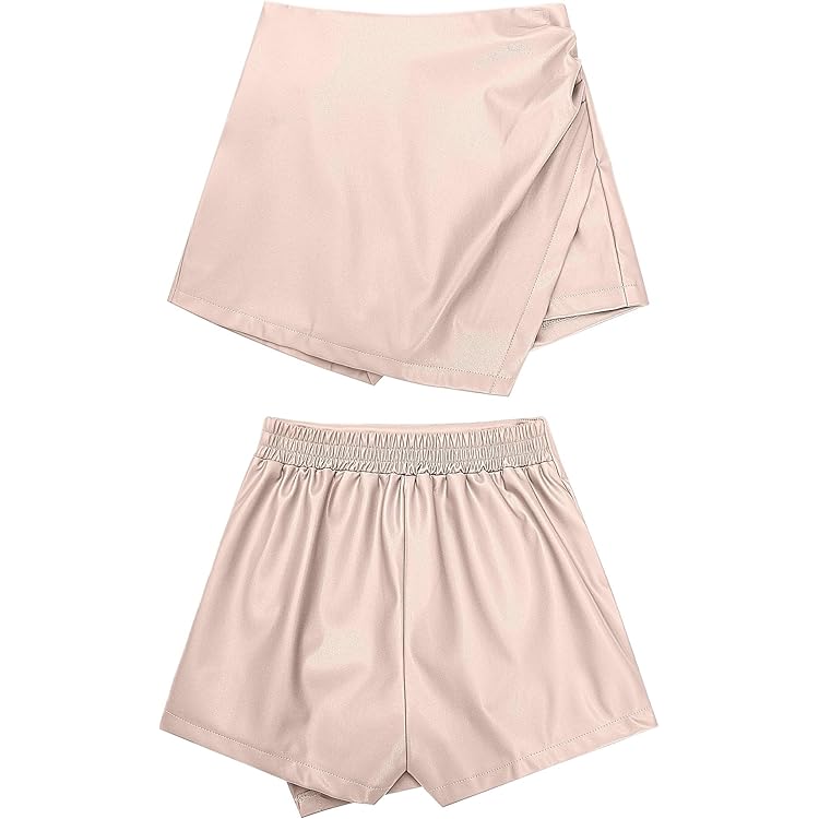 Shorts for Women Faux Leather Skorts High Waisted PU Leather Shorts Elastic Waist Ruched Wrap Skorts Skirts