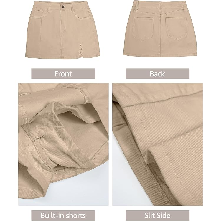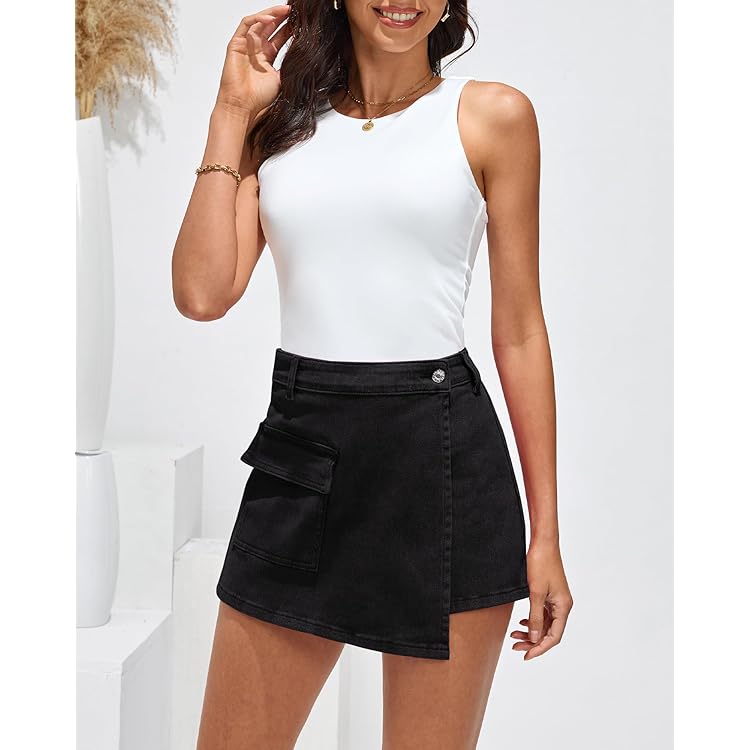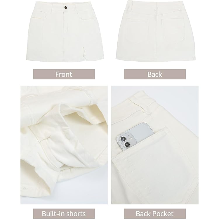 Skorts Skirts for Women Denim Mini Skirt Side Slit with High Waisted Jean Shorts Stretchy