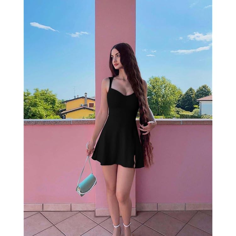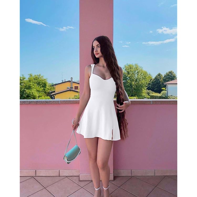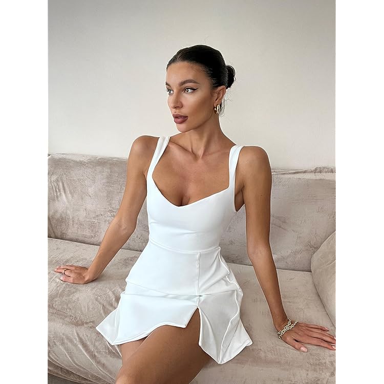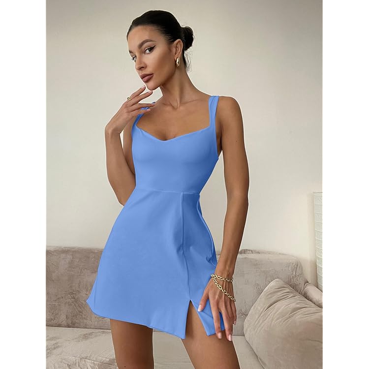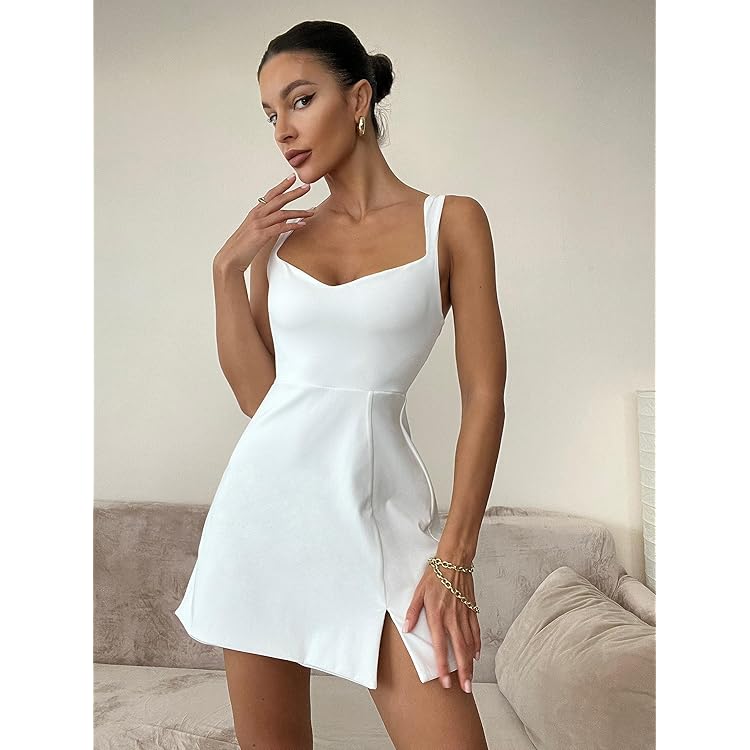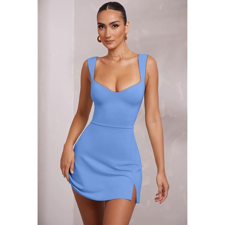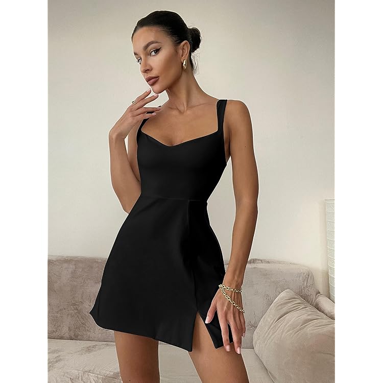 Women's Sleeveless Sweetheart Neckline A-line Split Bodycon Mini Dress