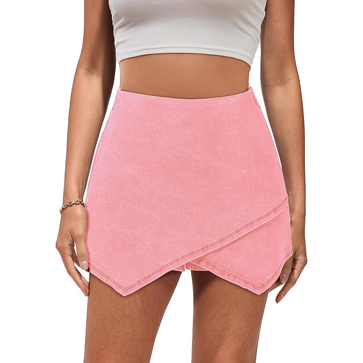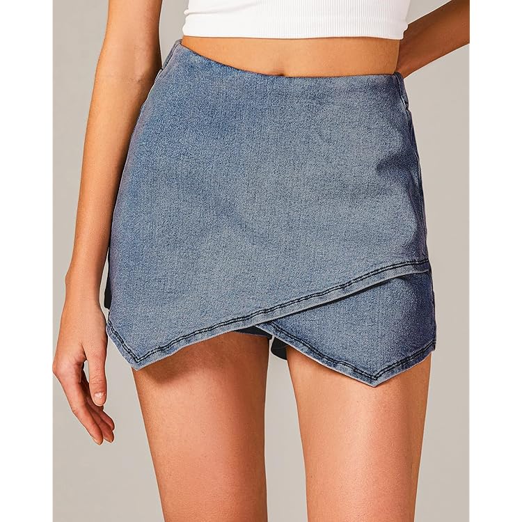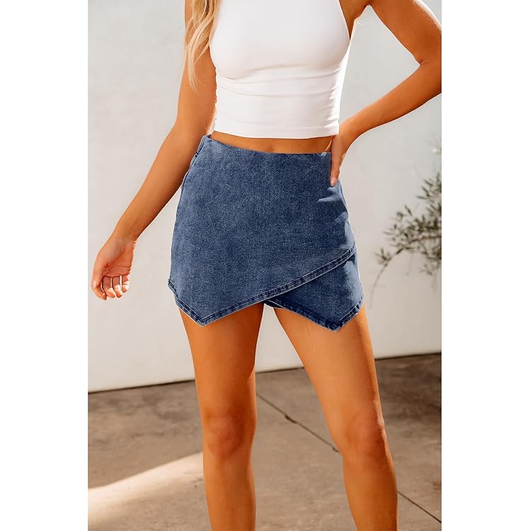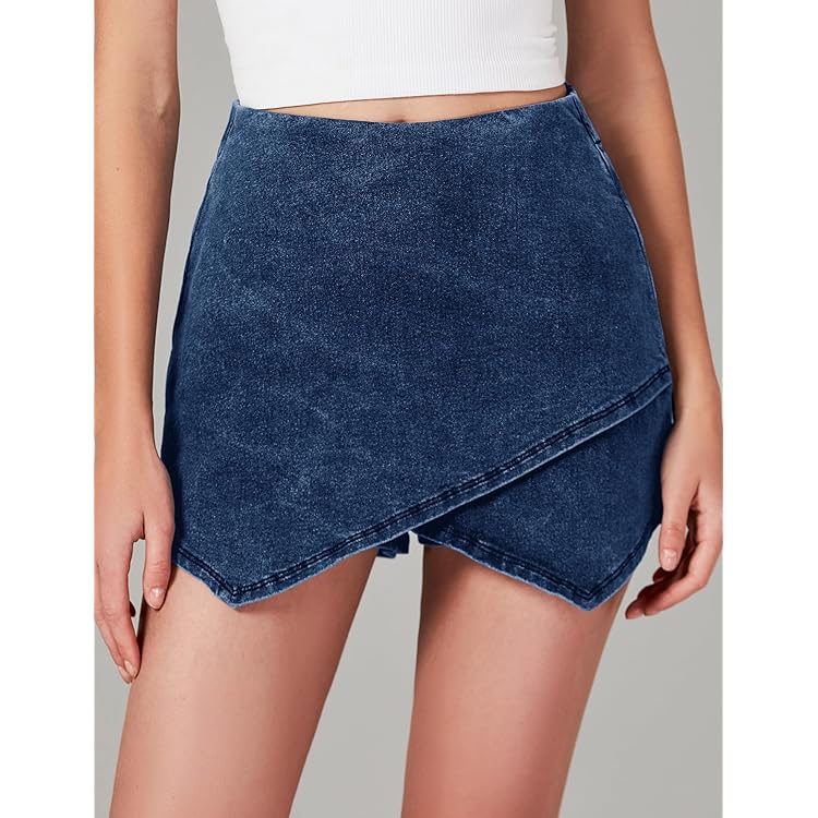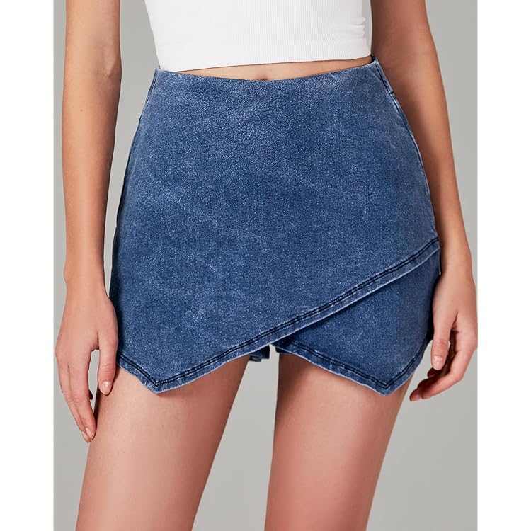 Skorts Skirts for Women Denim Mini Skirt Side Slit with High Waisted Jean Shorts Stretchy