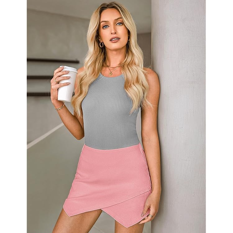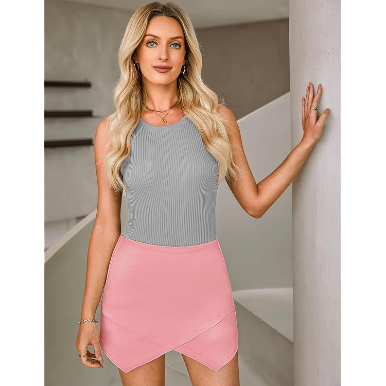 Shorts for Women Faux Leather Skorts High Waisted PU Leather Shorts Elastic Waist Ruched Wrap Skorts Skirts