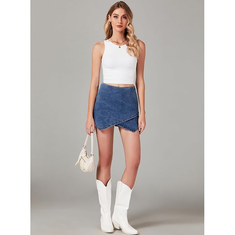 Denim Skorts for Woman Cargo Faux Wrap Jean Skort Skirts Stretchy High Waisted Skirt Shorts Country Concert Wear