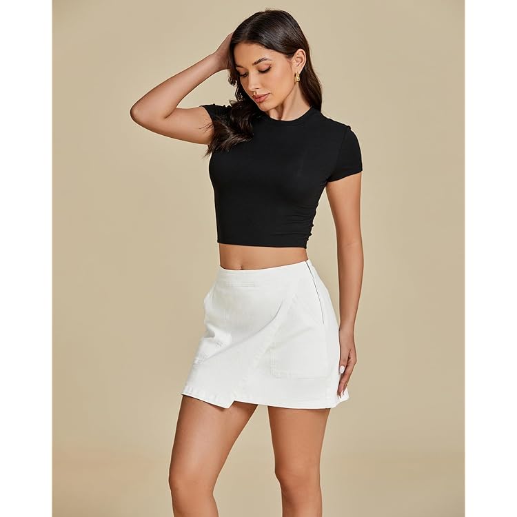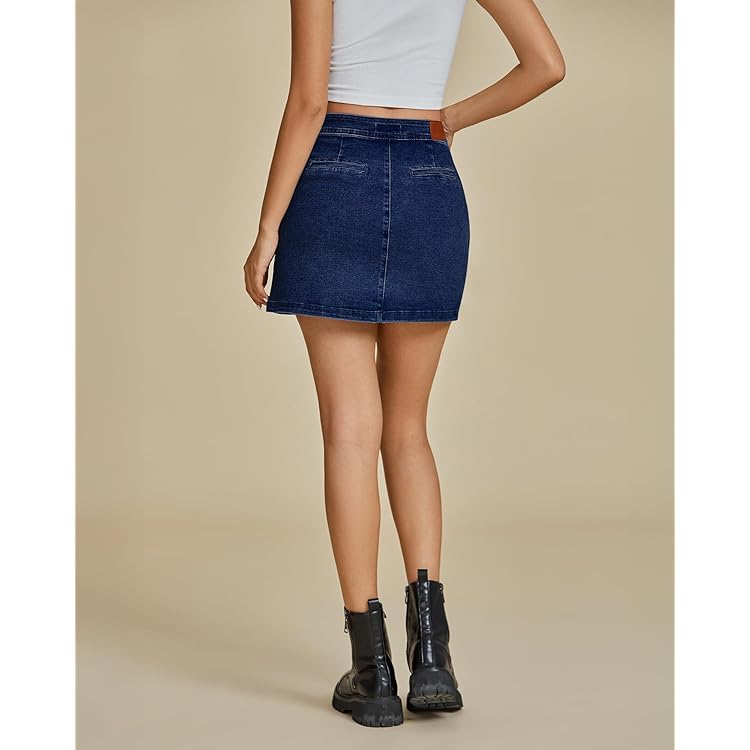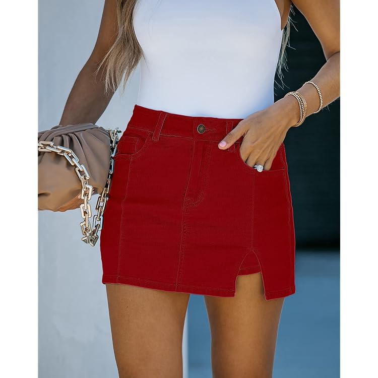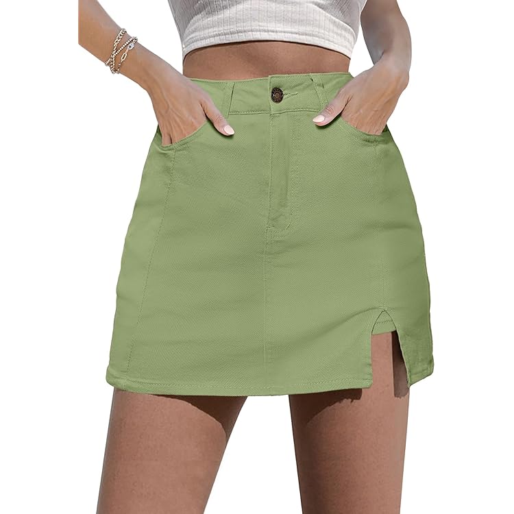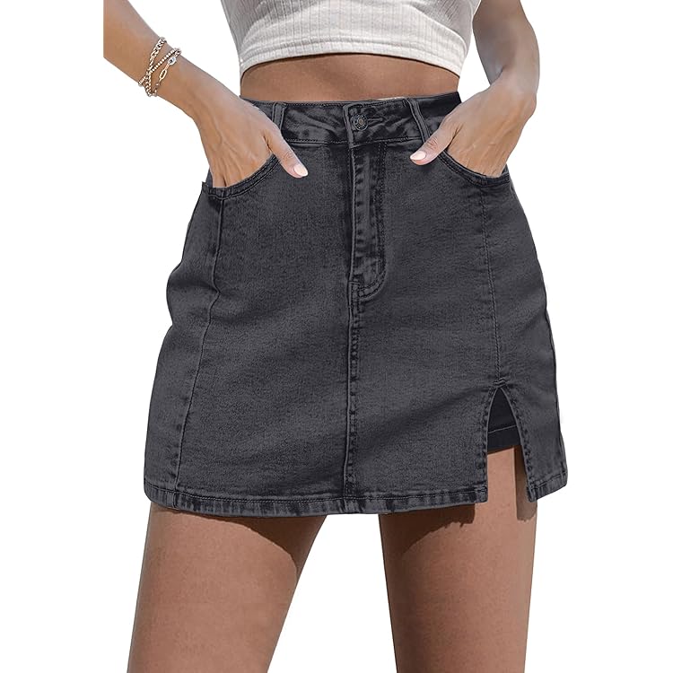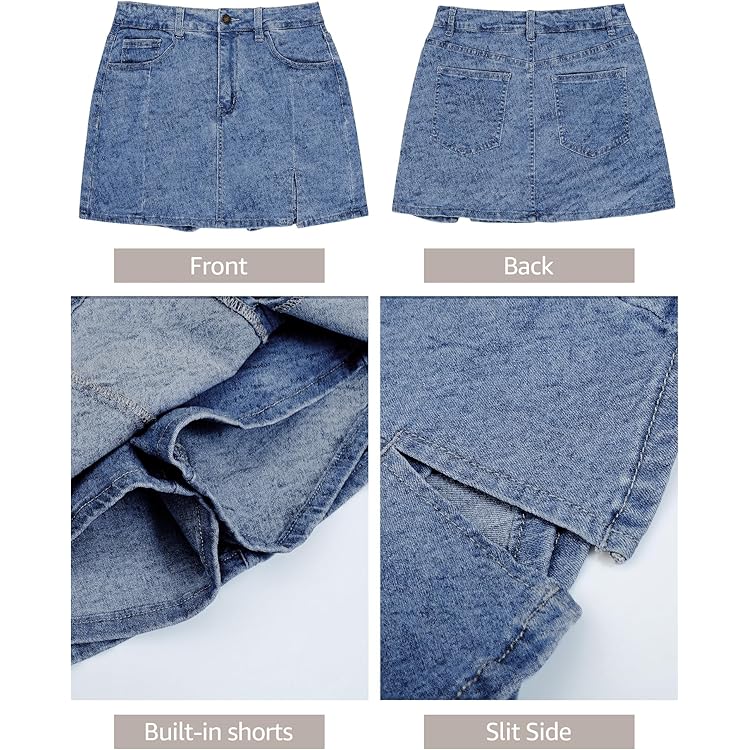 Skorts Skirts for Women Denim Mini Skirt Side Slit with High Waisted Jean Shorts Stretchy