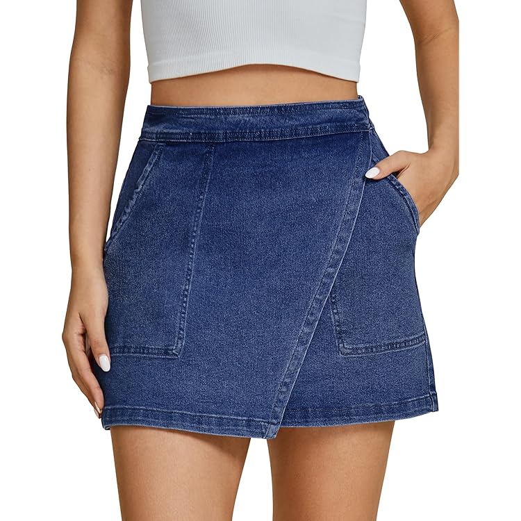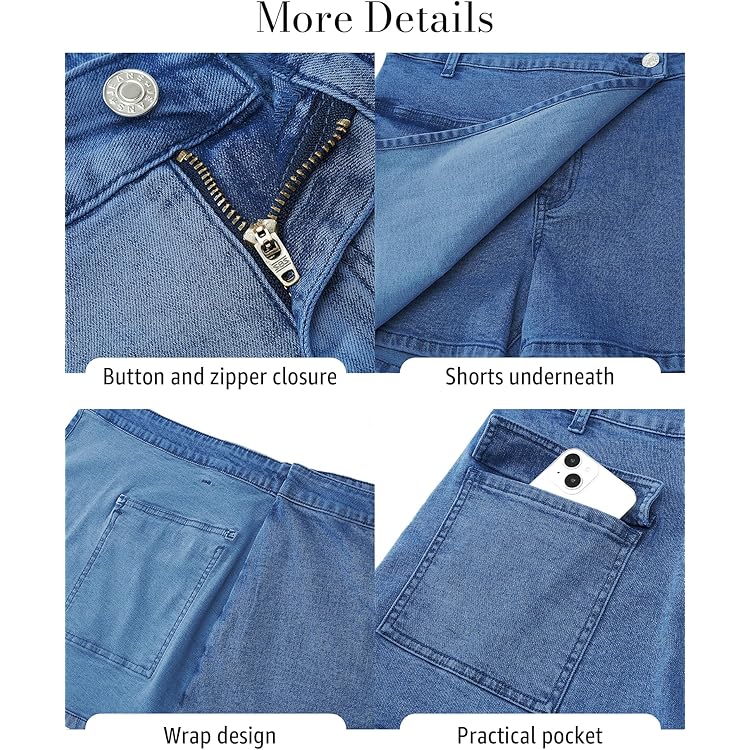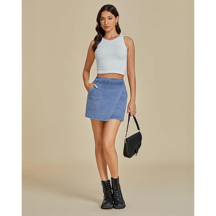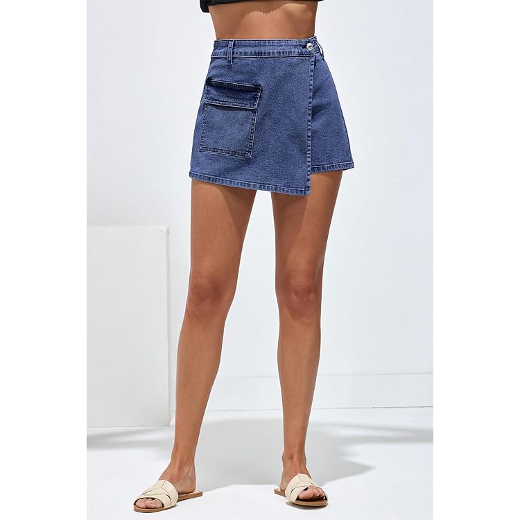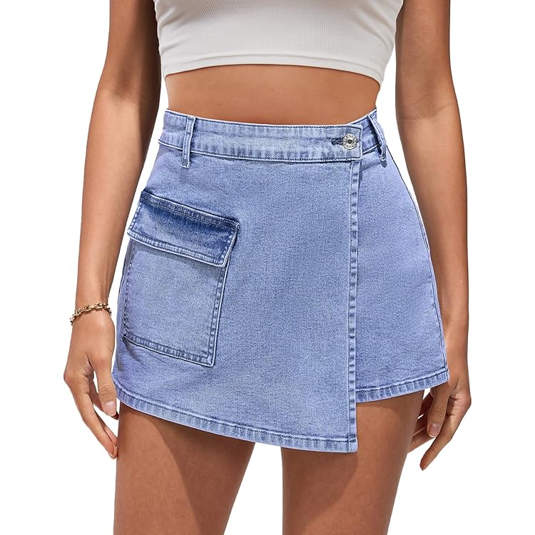 Denim Skorts for Woman Cargo Faux Wrap Jean Skort Skirts Stretchy High Waisted Skirt Shorts Country Concert Wear