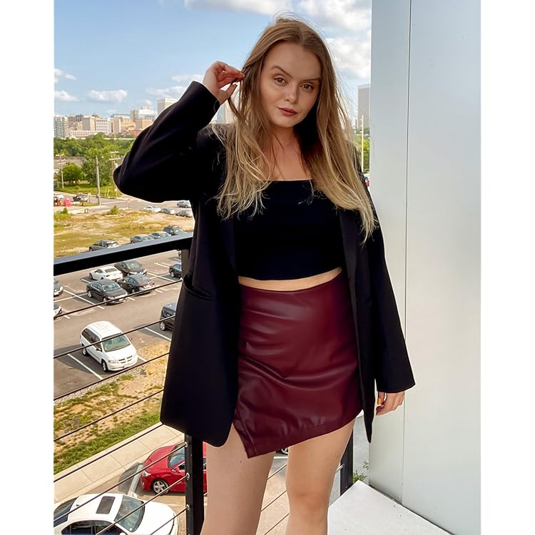 Shorts for Women Faux Leather Skorts High Waisted PU Leather Shorts Elastic Waist Ruched Wrap Skorts Skirts